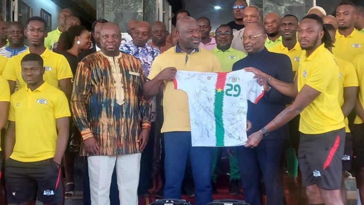 Ce dernier a reçu le fanion et le maillot des Etalons dédicacés par l’ensemble des joueurs et le staff technique. « Ce que nous leur (Etalons) avons dit est que toute la nation est de cœur avec eux. En cette période difficile où nous perdons des Hommes, nous devons rester soudés.