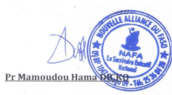 Pour ce faire, la NAFA encourage les nouvelles autorités et reste disponible à les accompagner avec toutes les forces vives de la nation dans un processus inclusif pour l’intérêt supérieur de notre Nation.