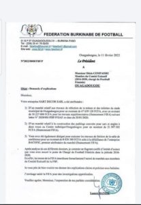 Dans une lettre datée du 11 février 2022, le président de la Fédération burkinabè de football (FBF), Lazare Banssé, a exigé des explications à Denis Compaoré, responsable de la société Sart Decor SARL et chargé du football féminin entre 2016 et 2020.