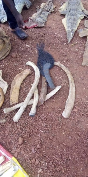 Huit peaux de crocodile, une défense entière d’éléphant, trois morceaux de défense d’éléphant, huit morceaux de peaux d’éléphant, quatre côtes d’éléphant, une queue d’éléphant, un crâne de phacochère, trois dents de phacochère, un crâne frais d’hippopotame et 19 objets sculptés en ivoire. C’est le butin saisi par la Direction Régionale de l’Environnement des Hauts Bassins le vendredi 08 avril 2022 à Bobo-Dioulasso entre les mains de quatre présumés trafiquants qui tentaient d’écouler leur marchandise.