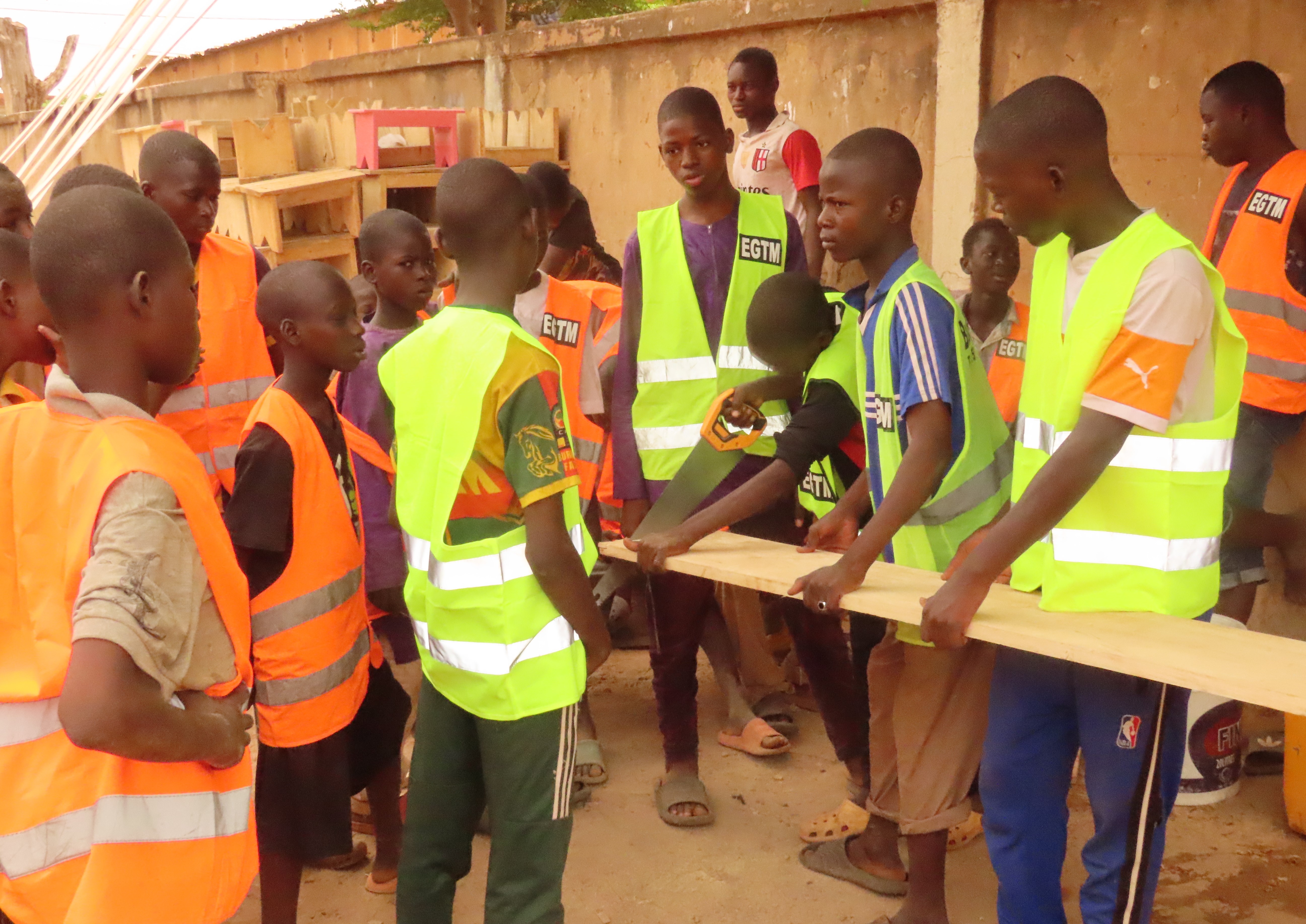 Il récupère rapidement un gilet et se met à classer des bois. La scène se répète sous nos yeux. Les nouveaux venus troquent chacun leurs boites de talibés avec des outils et se mettent à l’œuvre. En peu de temps, une vingtaine d’enfants, comme un essaim, envahissent l’atelier. C’est curieux sous nos cieux. À les voir cependant manier avec passion, rien ne semble leur être imposé.