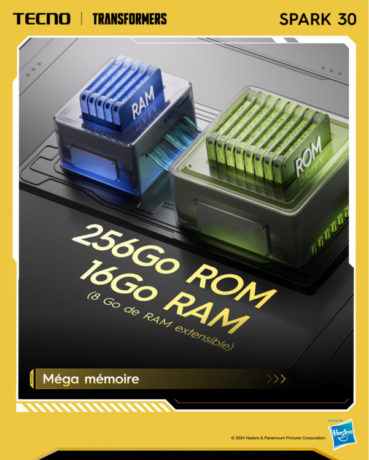 Spark30 arrive avec un stockage de #256Go et une RAM de #8Go extensible jusqu’à #16Go 🎉🎉🎉