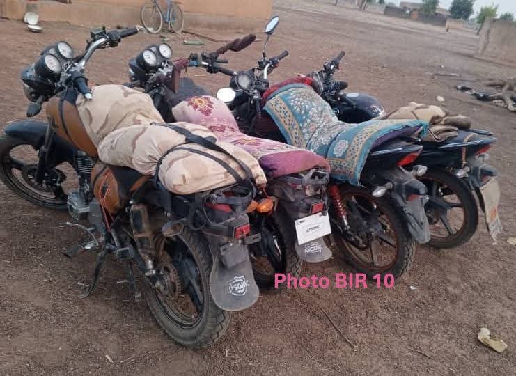Le butin saisi comprend notamment quatre motos, un fusil AK-47, des chargeurs d’AK-47, une roquette, un poste radio TYT, un téléphone, ainsi que du matériel de couchage et de mécanique. Les opérations se poursuivent pour sécuriser la zone et éliminer toute présence hostile.