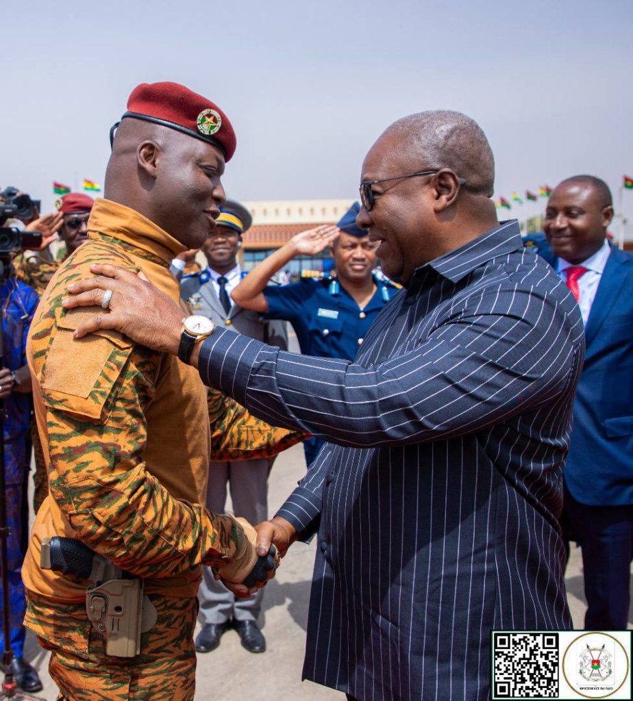 Avant de prendre le chemin retour, Son Excellence le Président John Dramani MAHAMA a confié à la presse être venu, dans le cadre du bon voisinage cher à la tradition africaine, parler essentiellement du renforcement de la coopération bilatérale au Président du Faso, Son Excellence le Capitaine Ibrahim TRAORÉ.