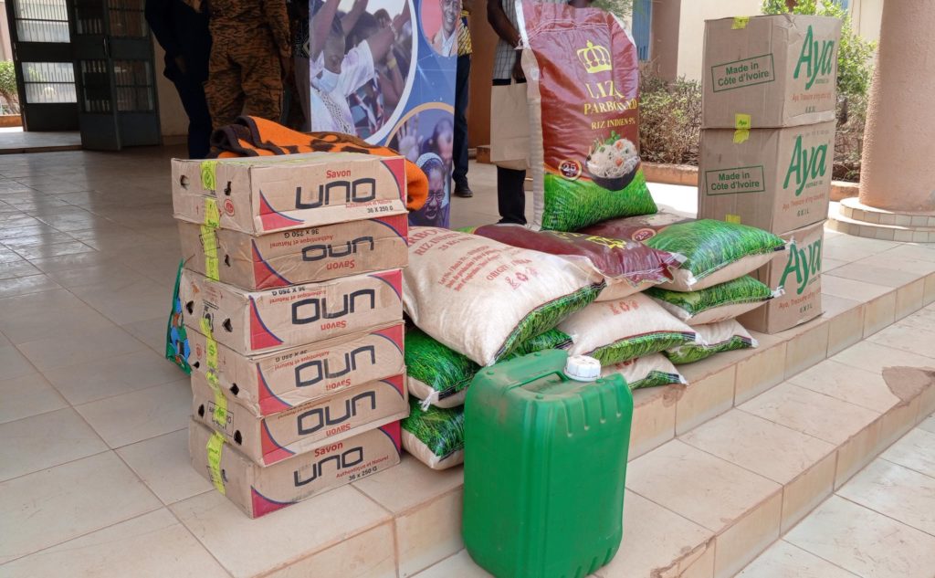 Le don qui a été remis comprend, entre autres , douze tonnes et demi de riz (plus de 502 sacs de 25 kg, 500 bidons d’huile de 3 L chacun 02 bidons de 20 L chacun, 505 cartons de savons, des effets d’habillements, des matelas, des chariots, des couvertures…