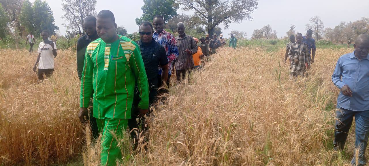 Accompagné d’une délégation, il s’est rendu sur le champ de blé de Michel Coulibaly, où il a officiellement lancé la récolte de cette céréale désormais arrivée à maturité.