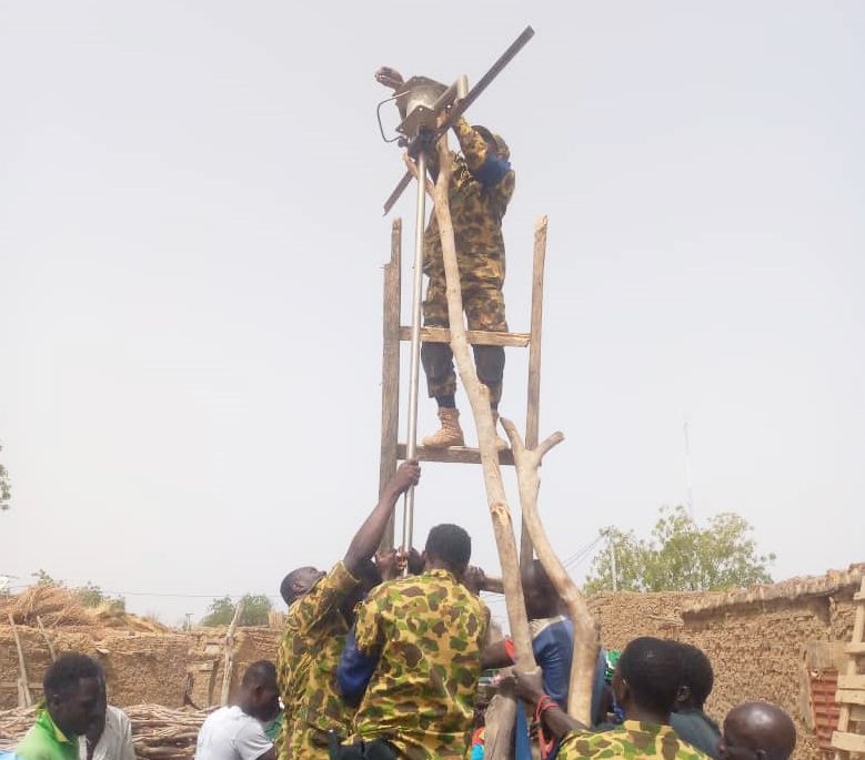 Face à cette situation le capitaine ZABSONRE et le lieutenant SANON décident de prendre langue avec les responsables du réseau Moov afin de trouver une solution pour le bonheur des populations. Ainsi des batteries neuves ont été convoyées sur les lieux par les hommes des Lieutenant ZOROME et GANDEMA à l’occasion de la relève de leurs collègues ayant passé un long séjour.