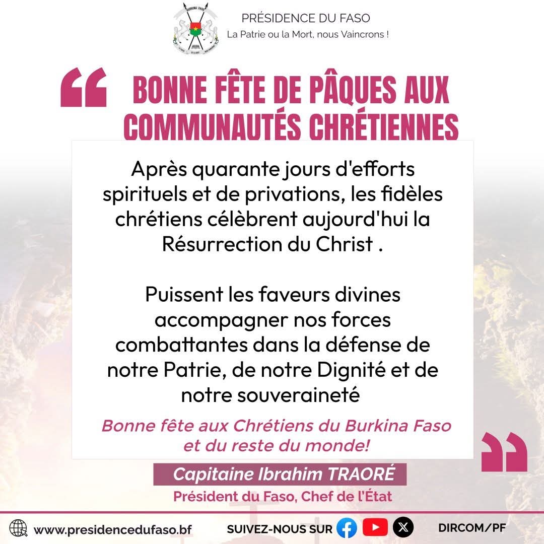 Pâques 2025 : « Puissent les faveurs divines accompagner nos forces combattantes » (Capitaine Ibrahim Traoré)