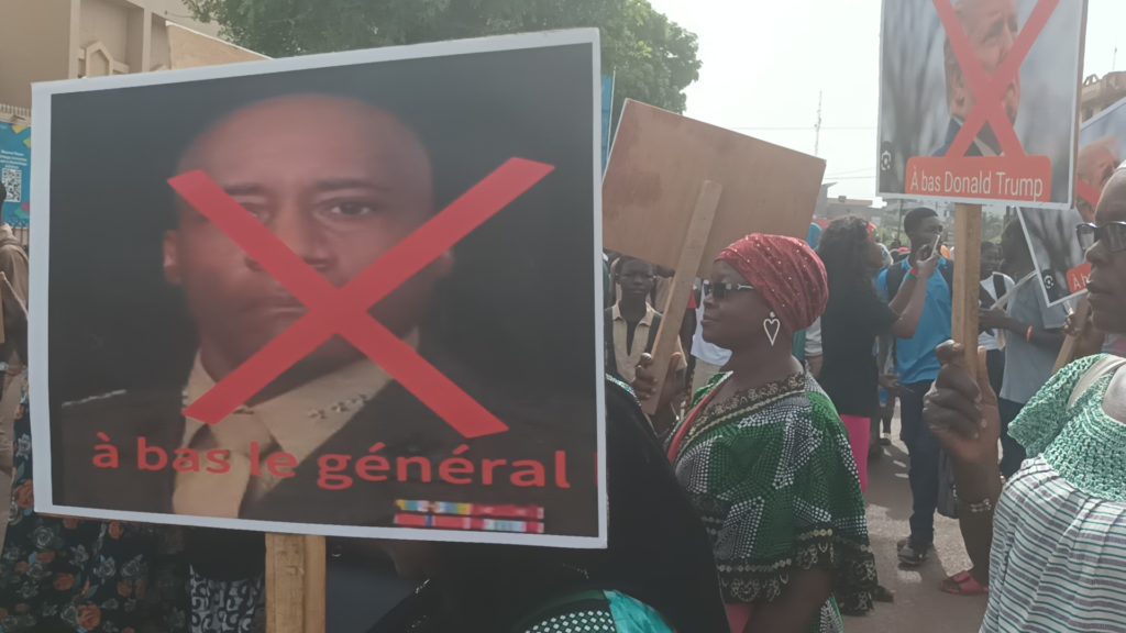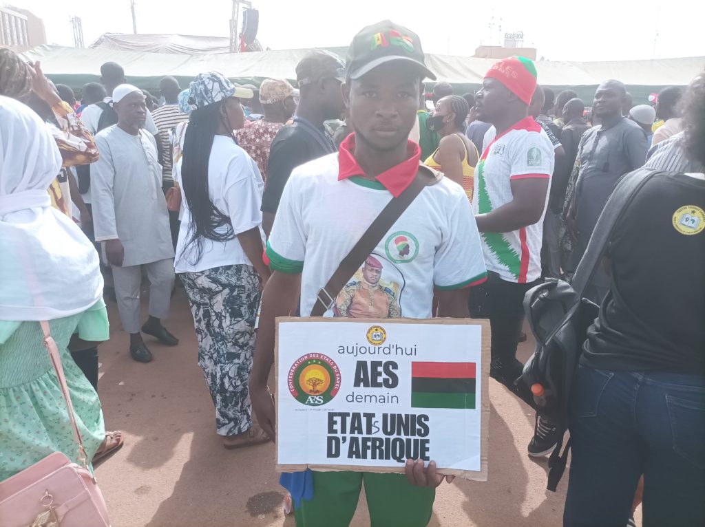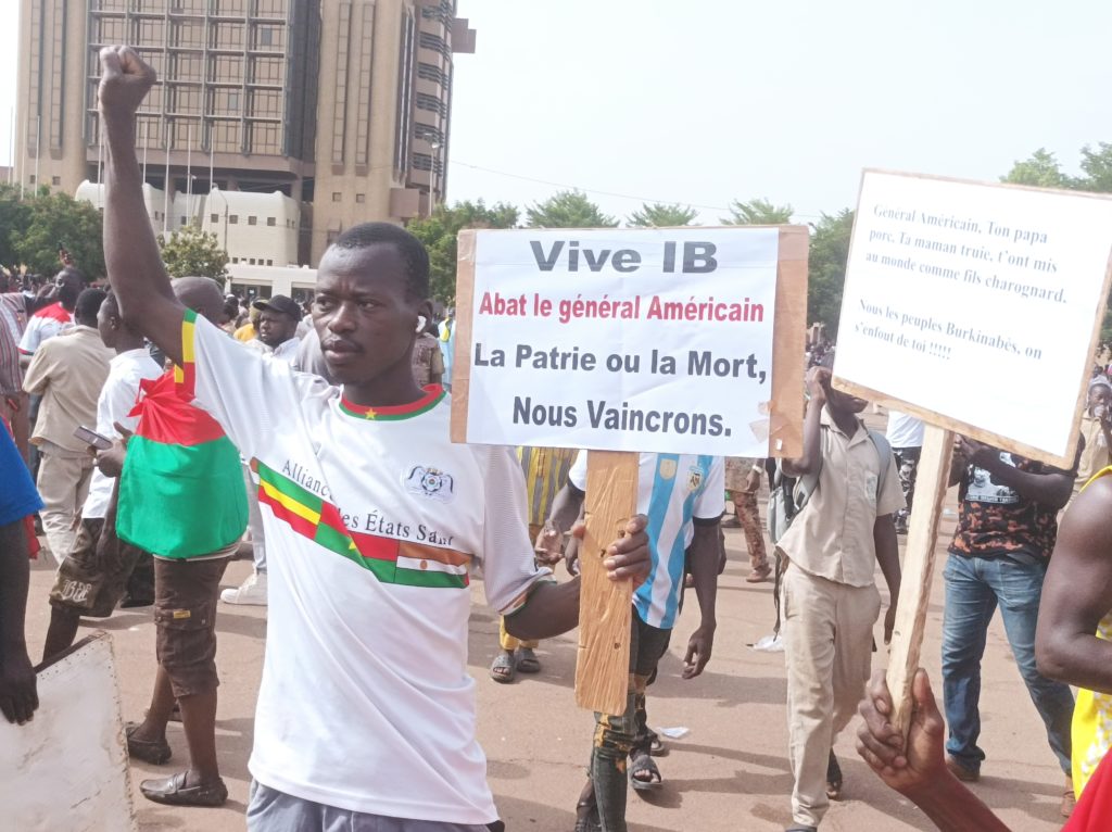 Au Burkina Faso, notamment à Ouagadougou, les populations se sont donné rendez-vous à la Place de la Révolution de Ouagadougou. Certains avec des drapeaux du Burkina Faso, du Mali, du Niger, de l’Alliance des États du Sahel (AES)… et d’autres avec des pancartes assez interpellatrices. « L’African com est une structure terroriste. Non à l’ingérence des Occidentaux et des Américains… », pouvait-on lire.