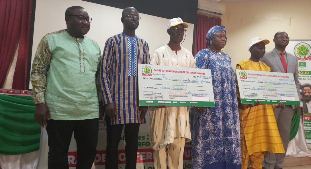 En guise de soutien à l’entrepreneuriat, la CARFO a également remis des primes d’un montant total de 250 000 FCFA à deux anciens fonctionnaires retraités ayant créé des entreprises créatrices d’emplois pour les jeunes.