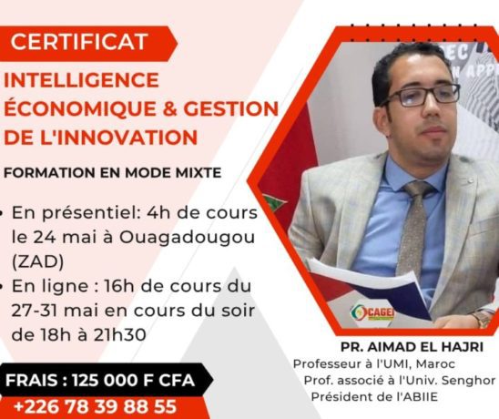 Mode mixte: 4 heures de cours en présentiel le 24 mai à Ouagadougou (ZAD) et 16 heures de cours en ligne du 27 au 31 mai 2025 en cours du soir entre 18h et 21h 30 ;