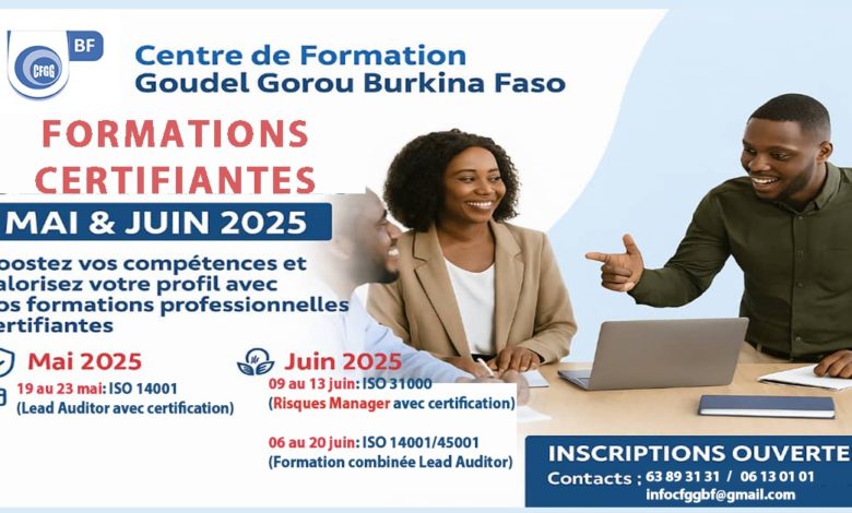 Communiqué : Formation certifiantes ISO-Mai et Juin 2025 avec le Centre de Formation Goudel Gorou Burkina Faso (CFGG-BF)