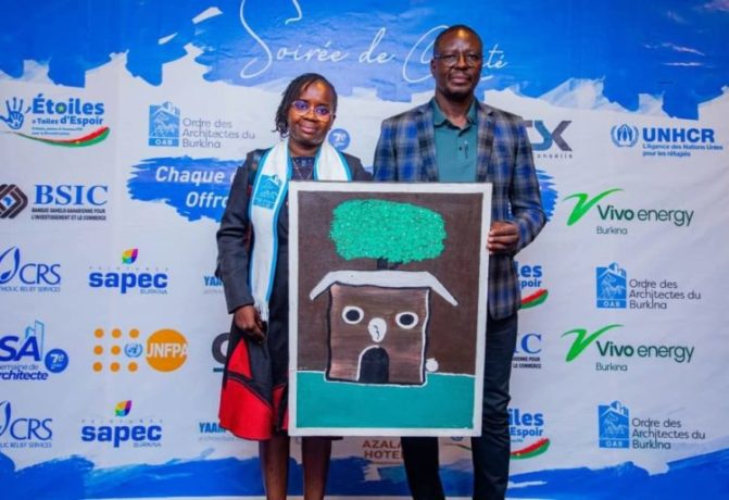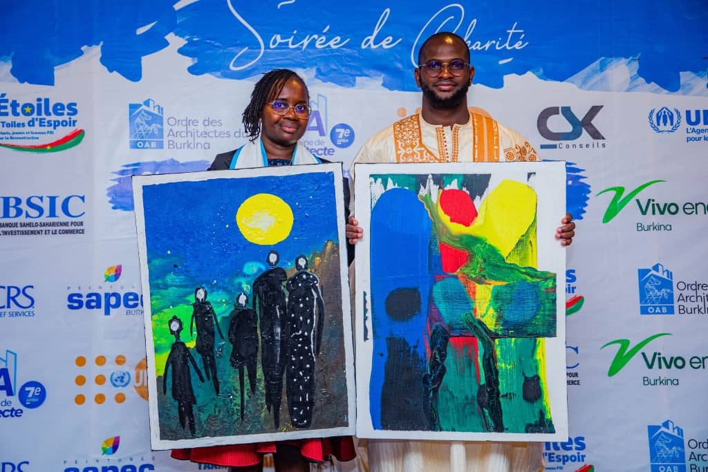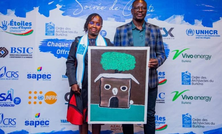 Le Conseil national de l’ordre des architectes du Burkina (OAB) a organisé dans le cadre de son projet novateur intitulé « Étoiles et toiles d’espoir », la soirée de vente aux enchères des toiles peintes par les enfants, jeunes et femmes déplacés internes le vendredi 13 juin 2025, sous la présidence d’Ada Yaya Bocoum, la présidente de l’OAB 2023-2025. Cette initiative vise à apporter un soutien aux enfants des Personnes Déplacées Internes (PDI) à travers l’art.