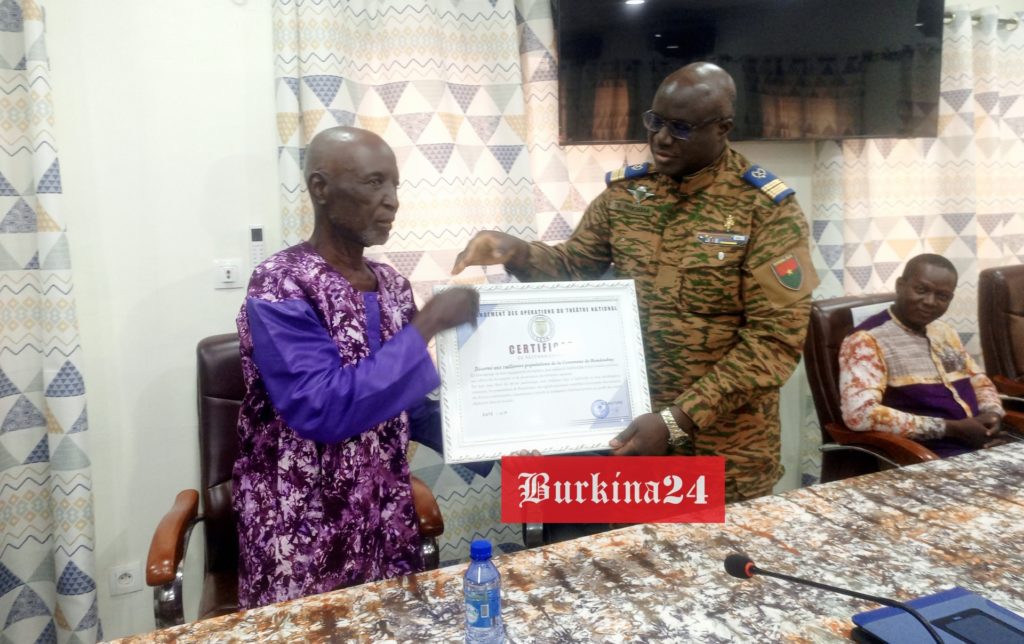 Au nom des plus hautes autorités du pays et de la hiérarchie militaire, le chef d’État-major général adjoint des armées, commandant le commandement des opérations du théâtre national, le colonel Théophile Nikiéma a remis, le vendredi 11 juillet 2025, un certificat de reconnaissance aux populations de la commune rurale de Bondokuy pour leurs actions en faveur des forces combattantes déployées dans leur localité. En effet, les ressortissants de cette commune ainsi que les villages environnants se sont mobilisés et ont construit un camp avec toutes les infrastructures nécessaires au profit du détachement militaire de leur localité dont les éléments dormaient dans une école à leur arrivée.