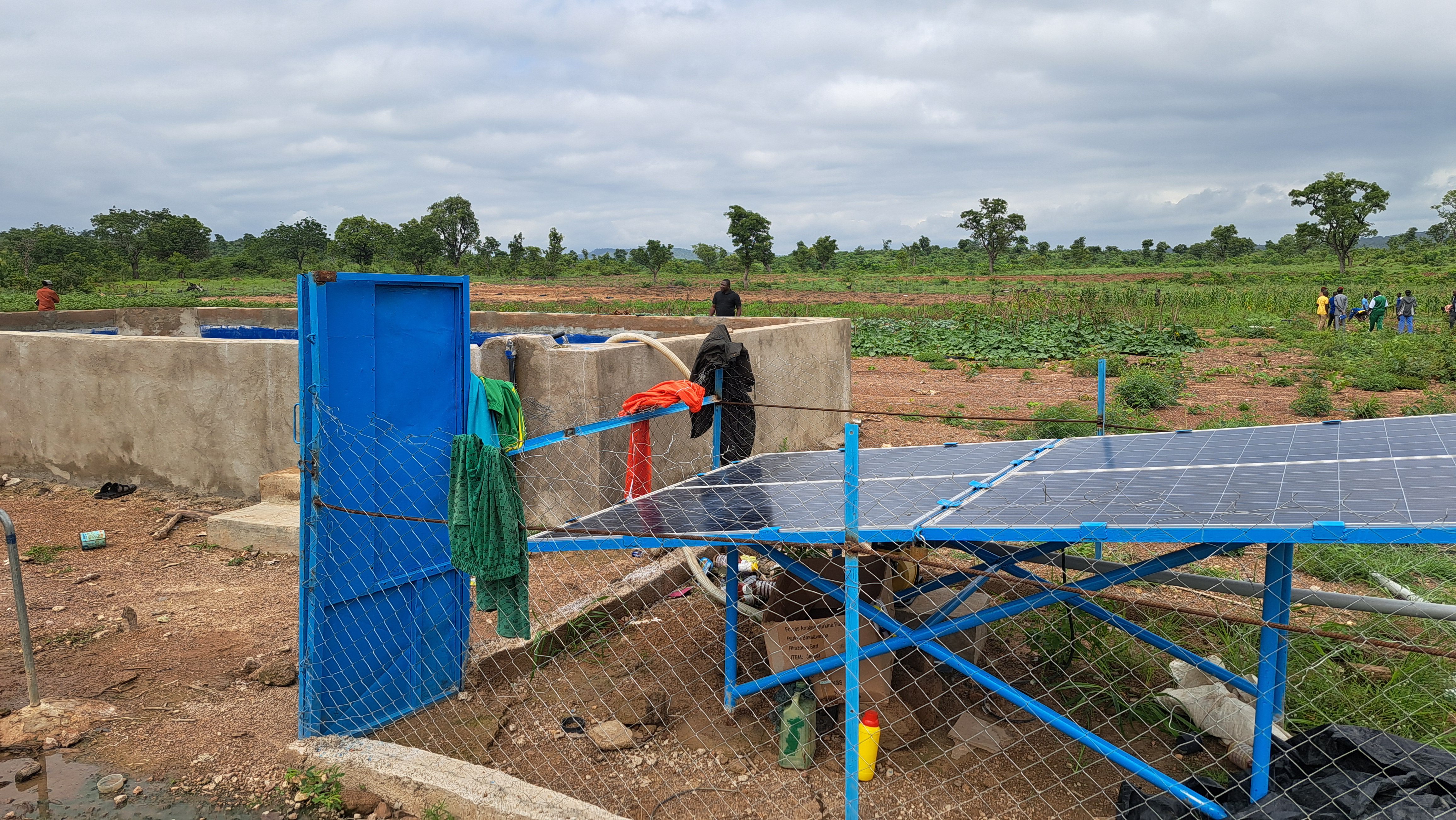 Sur ce site, quatre hectares ont été aménagés et clôturés, équipés d’un forage solaire de 5 m³/h avec pompe immergée, de bassins de 50 m³, d’un surpresseur de 25 m³/h, d’un château d’eau de 5 m³, et d’un système d’irrigation par aspersion utilisant la technologie du laser spray.