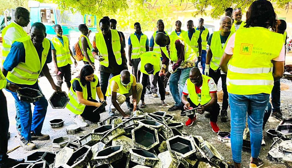 Après la remise symbolique, le groupe s’est investi dans les travaux sur place. Responsables et collaborateurs ont participé non seulement à la fabrication de pavés, mais aussi à leur stockage. Cédric Sindgo, Directeur Commercial de la peinture JESSI chez Hage Matériaux, a même promis que cet engagement se poursuivra avec le même objectif.