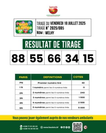 Communiqué | Faso Loto – « Kounandia » : Résultats du Tirage – Mercredi 16 Juillet 2025