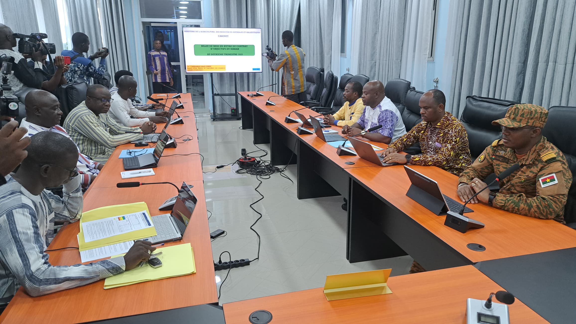 Le ministre d’Etat, ministre de l’Agriculture, des Ressources animales et halieutiques, Ismaël Sombié, a présenté ce 4 août 2025 les résultats de l’évaluation de son contrat d’objectifs au premier ministre Rimtalba Jean Emmanuel Ouédraogo. Le ministère affiche un taux de mise en œuvre de 56,63% au 30 juin 2025, un résultat jugé « satisfaisant » par le ministre d’État.