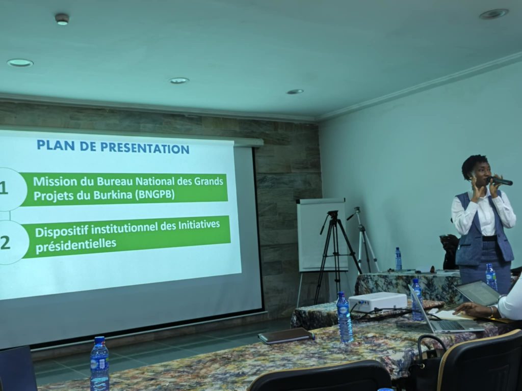 La communication inaugurale, dans le cadre de l’atelier d’information au profit des journalistes, communicateurs et influenceurs, a porté sur la présentation générale du Bureau national des grands projets du Burkina (BN-GPB). La communicatrice, Jacinthe Anaïs Myriam Tapsoba, Directrice de la planification et du suivi évaluation du BN-GPB, a présenté l’entité à travers ses missions, sa vision et le dispositif institutionnel.