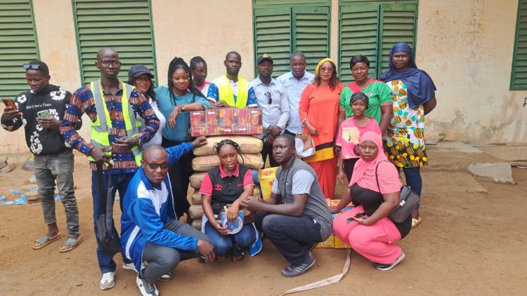 L’équipe de l’association TRO lors de la cérémonie de remise de leur contribution, composée d’une tonne de ciment, de Nescafé et de Lipton