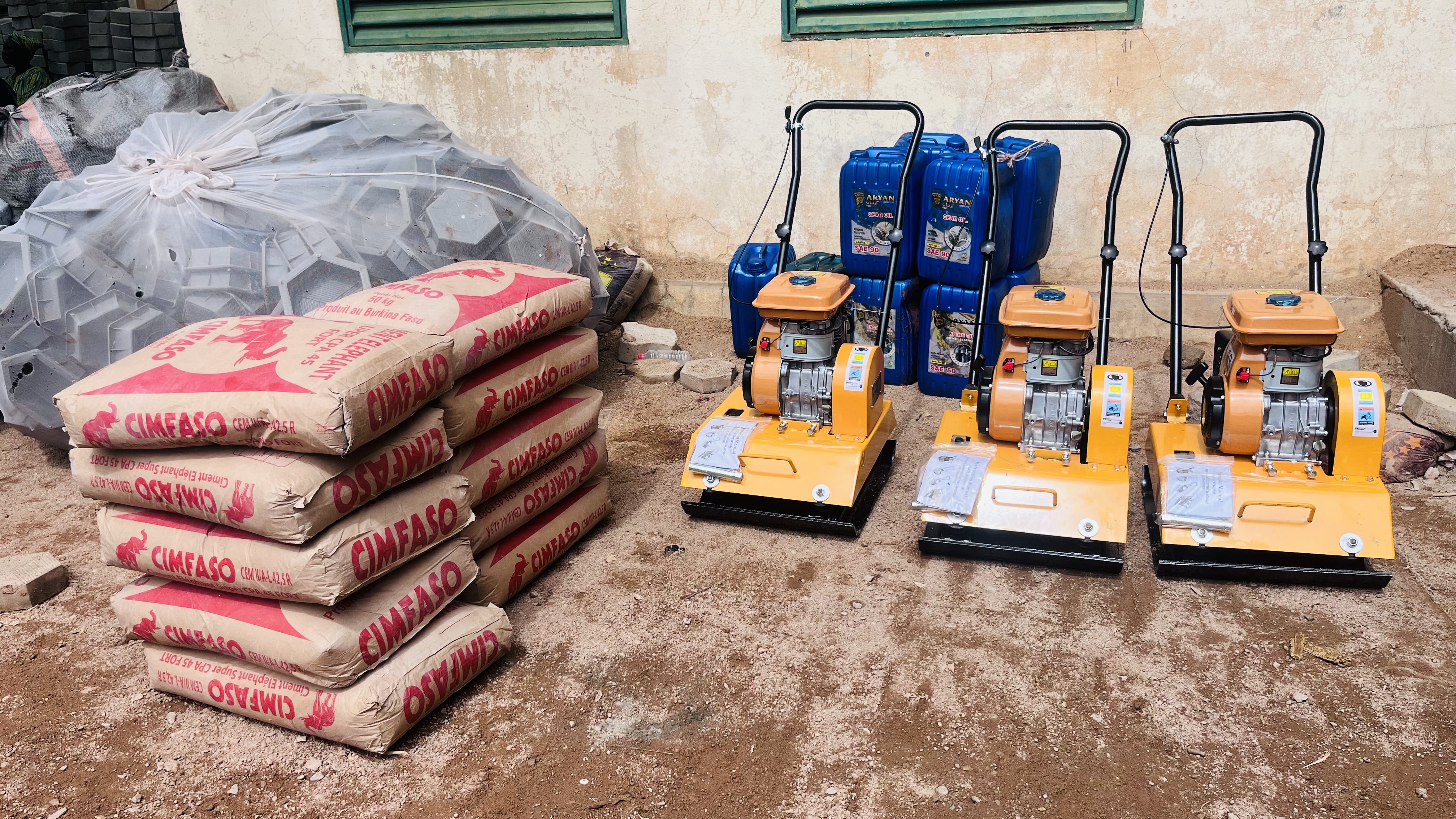 « Nous avons apporté du ciment à titre symbolique pour traduire l’acte de construire le pays, nous avons remis trois compacteurs, qui sont extrêmement importants pour compacter les pavés, nous avons remis 40 bidons d’huile de 20 litres, qui sont nécessaires pour le démoulage, et nous avons remis 1000 moules pour continuer le travail de fabrication des routes », a indiqué le président du CIMTS.