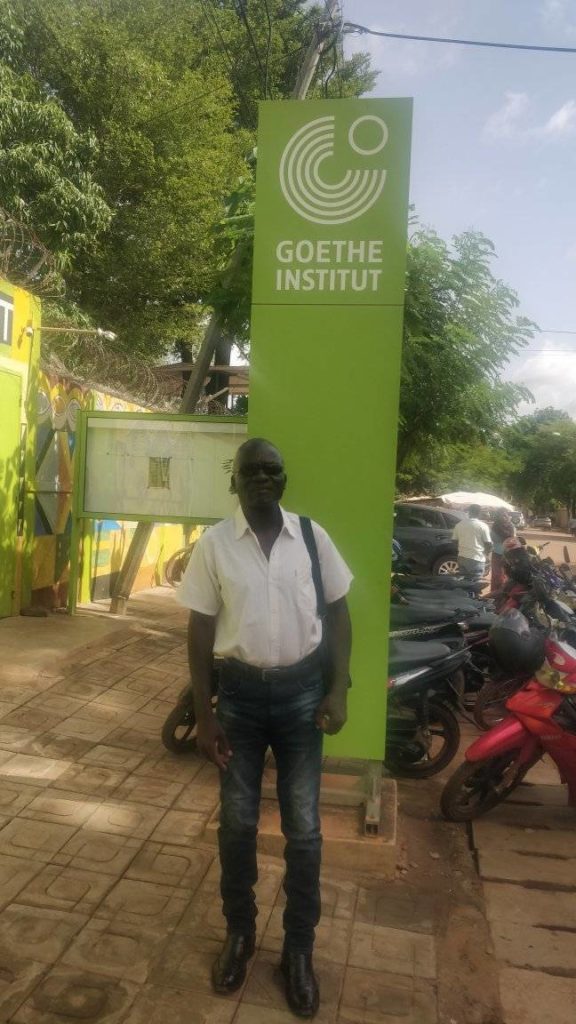 A l’Institut Goethe de Ouagadougou, après une rencontre, Napo Bitoumba pose fièrement (Crédit photo-Roger Napo Bitoumba-page Facebook)