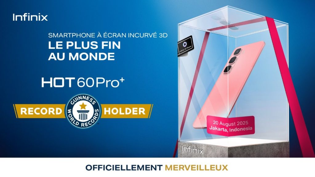 HONG KONG, 26 AOÛT 2025 — Le smartphone HOT 60 Pro+ de Infinix a été officiellement certifié par GUINNESS WORLD RECORDS™ comme étant le smartphone à écran incurvé 3D le plus fin au monde, avec une épaisseur de seulement 5,95 mm à son point le plus fin. La cérémonie de certification, qui s’est déroulée en Indonésie, a marqué une étape historique dans la conception des smartphones et dans le parcours mondial de Infinix.