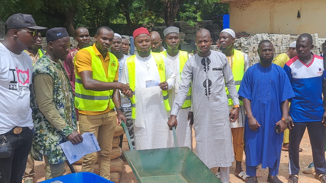 El Hadj Amado Taonsa remet officiellement le don de matériel de construction, composé de 10 tonnes de ciment et 10 brouettes, pour soutenir l’initiative Faso Mêbo