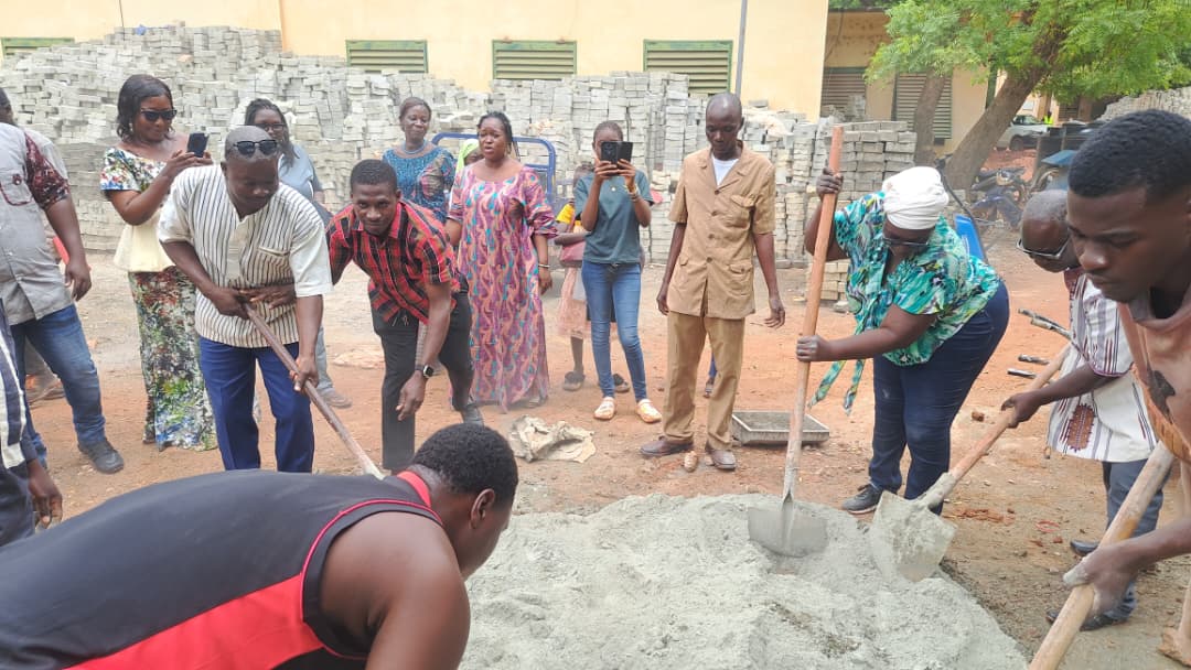 Au-delà du ciment, le groupe de formateurs aux métiers ont également apporter leur force de travail, en participant aux travaux au siège de l’initiative Faso Mêbo à Ouagadougou.