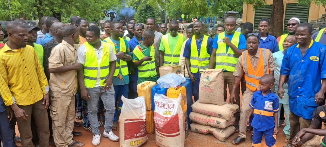 Une tonne de ciment, 15 bidons d’huile de vidange, deux sacs de riz, et des denrées alimentaires comme des sardines et du macaroni, c’est la composition du don de l’Association des jeunes mécaniciens de cycles et motocycles du Faso à l’initiative présidentielle Faso Mêbo.