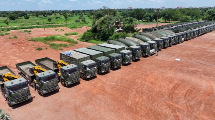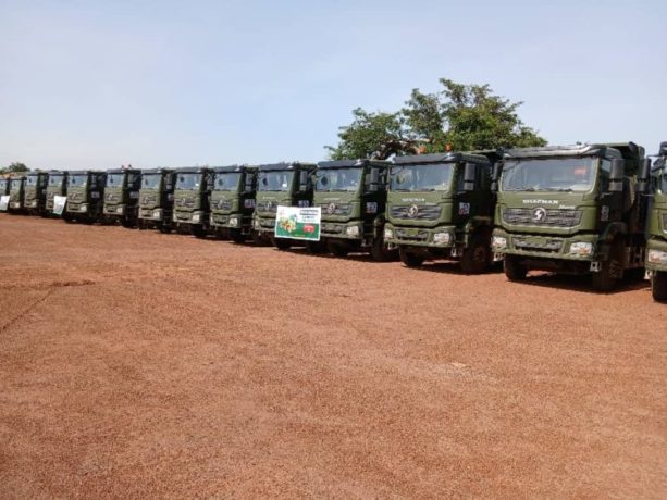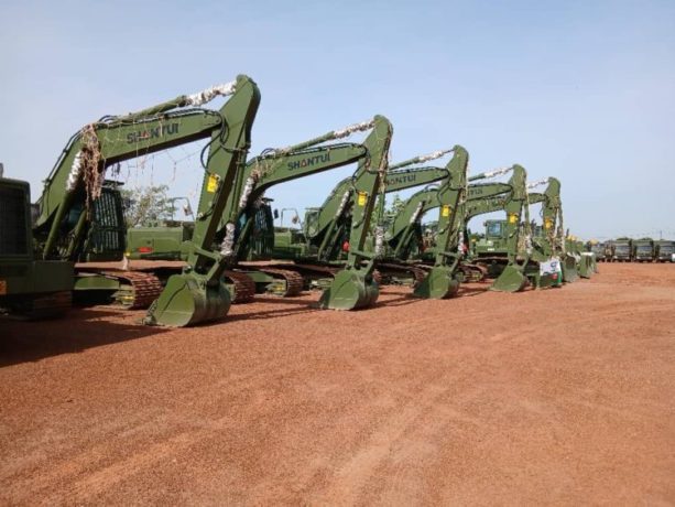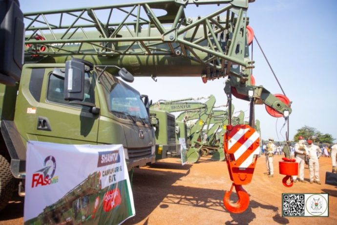 Ce matériel réceptionné par le Coordonnateur national de l’Initiative présidentielle FASO Mêbo, le Cdt Zoodnoma Ahmed SAKANDÉ, est composé entre autres de véhicules Pick up 4X4, de machines recycleuses, de bétonnières, de camions-grues, de camions-bennes, de camions citernes, de projecteurs mobiles et de niveleuses.