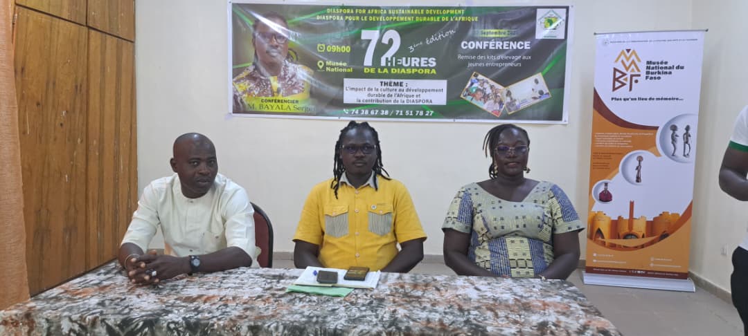 Dans le cadre de la troisième édition des 72 heures de la Diaspora édition 2025 qui se tient du 12 au 15 septembre 2025, l‘ONG DIAFASUD structure organisatrice de l’événement a tenu une conférence le samedi 13 septembre 2025 au Musée national de Ouagadougou. La conférence axée sur « L’impact de la culture au développement durable de l’Afrique et la contribution de la Diaspora », a souligné le rôle clé de la diaspora burkinabè. A l’occasion, DIAFASUD a concrétisé son engagement en remettant des kits d’élevage et des poussins à des participants de la 2e édition ayant suivi une formation sur l’élevage.