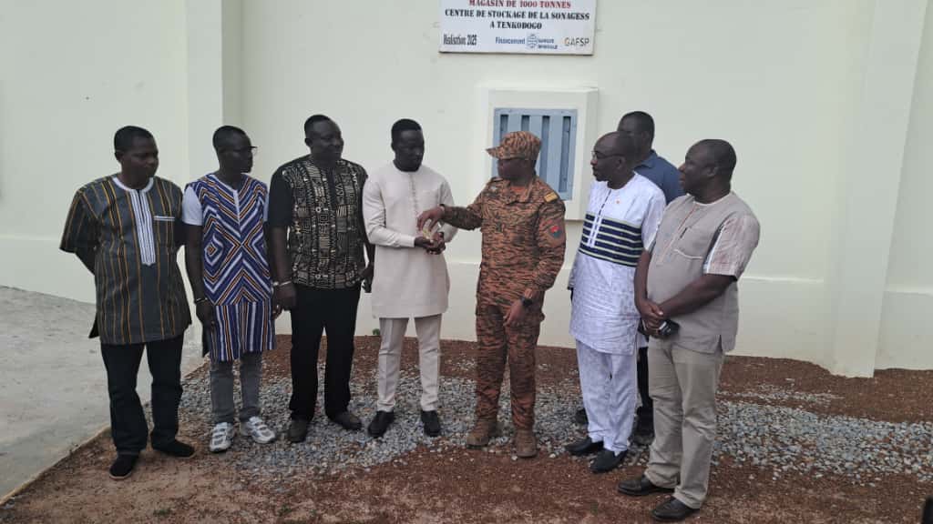 En parallèle de cette visite de terrain, le ministre a réceptionné officiellement les clés de nouveaux magasins de stockage offerts à la SONAGESS par le Programme de Résilience du Système Alimentaire en Afrique de l’Ouest (PRSA) dans la soirée du 24 septembre 2025 à Tenkodogo.