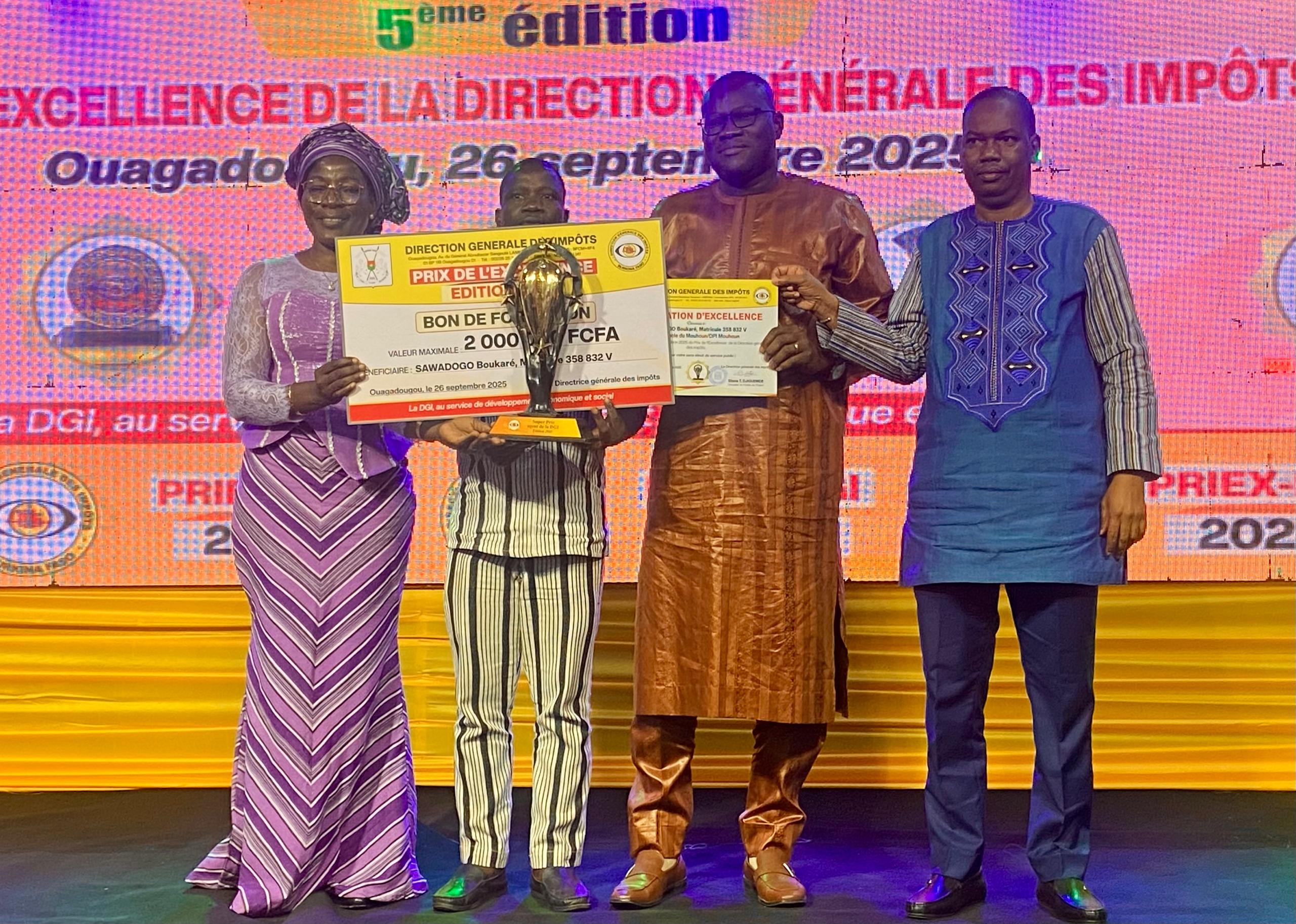 Le prix du « super agent » a été décerné à Boukaré Sawadogo, fonctionnaire à la direction régionale des impôts du Mouhoun. Ce dernier a été gratifié d’un trophée ainsi que d’un bon de formation d’une valeur de deux millions de F CFA.