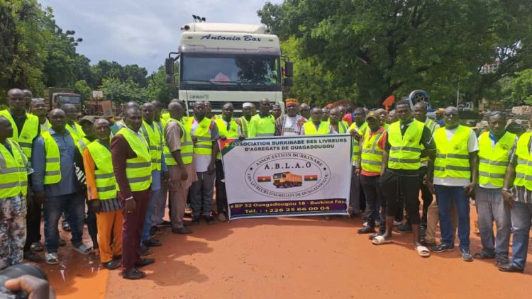 L’Association Burkinabè des Livreurs d’Agrégats de Ouagadougou (ABLAO) a apporté deux voyages de granite et trois voyages de sable, transportés par des camions bennes de 40 tonnes , à l’initiative présidentielle Faso Mêbo.