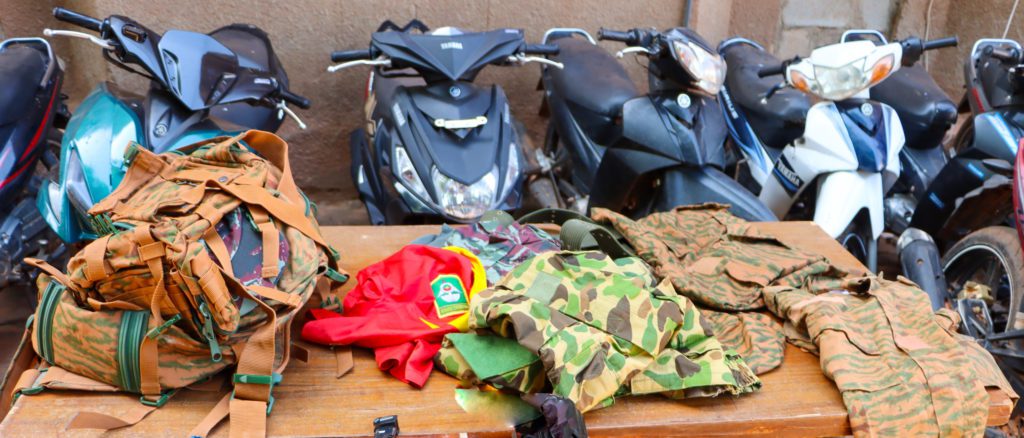 L’opération policière a permis la saisie d’un matériel conséquent, dont 2 fusils Kalachnikov avec 28 munitions, 1 pistolet automatique calibre 22 mm avec 2 munitions, 20 vélomoteurs volés, dont plusieurs modèles Yamaha Sirius et Scooter, 1 véhicule Toyota Corolla, ainsi que divers effets militaires (sacs, tenues guépard, casquettes, capes).