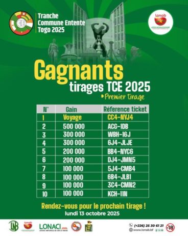 Découvrez la liste des heureux gagnants du premier tirage dans le cadre de la Tranche Commune Entente qui a eu lieu ce lundi 06 octobre 2025