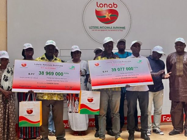 La Loterie Nationale Burkinabè (LONAB) a procédé ce jeudi 16 octobre 2025 à la remise officielle de deux gros lots du Pari Mutuel Urbain Burkinabè (PMU’B). Le cumul de ces deux chèques s’élève à plus de soixante-dix-huit millions (78 000 000) de francs CFA, distribués à deux heureux gagnants du jeu 4+1 du PMU’B. La cérémonie de remise s’est déroulée au siège de la LONAB.