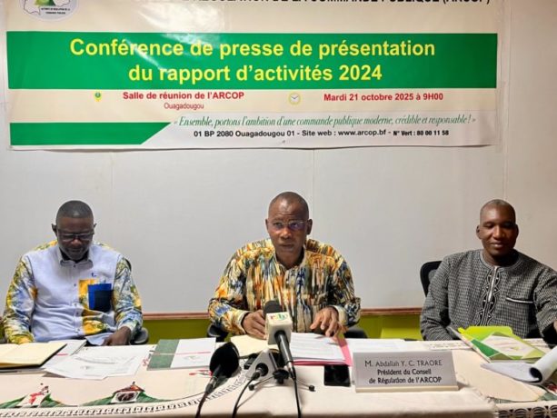 L’Autorité de Régulation de la Commande Publique (ARCOP) a tenu, ce mardi 21 octobre 2025, une conférence de presse pour rendre public son rapport d’activités 2024, remis officiellement au Premier Ministre, Rimtalba Jean Emmanuel Ouédraogo, le 6 octobre dernier.