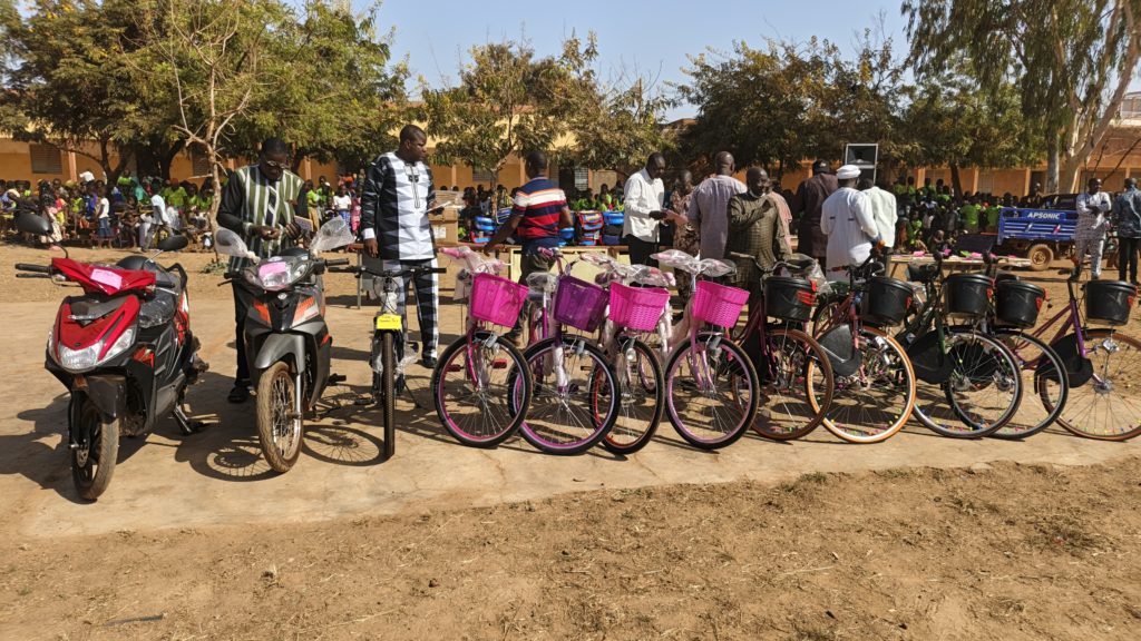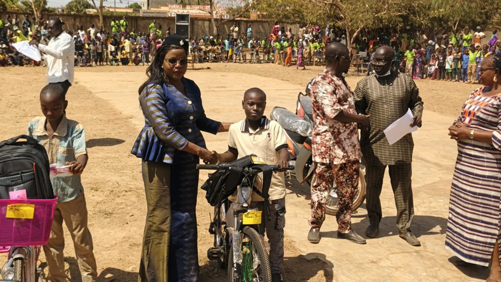 Continuez à apprendre, à gravir, à être polis et à être solidaires », a-t-elle ajouté. Des motos, des vélos et des kits scolaires ont été remis aux différents lauréats.