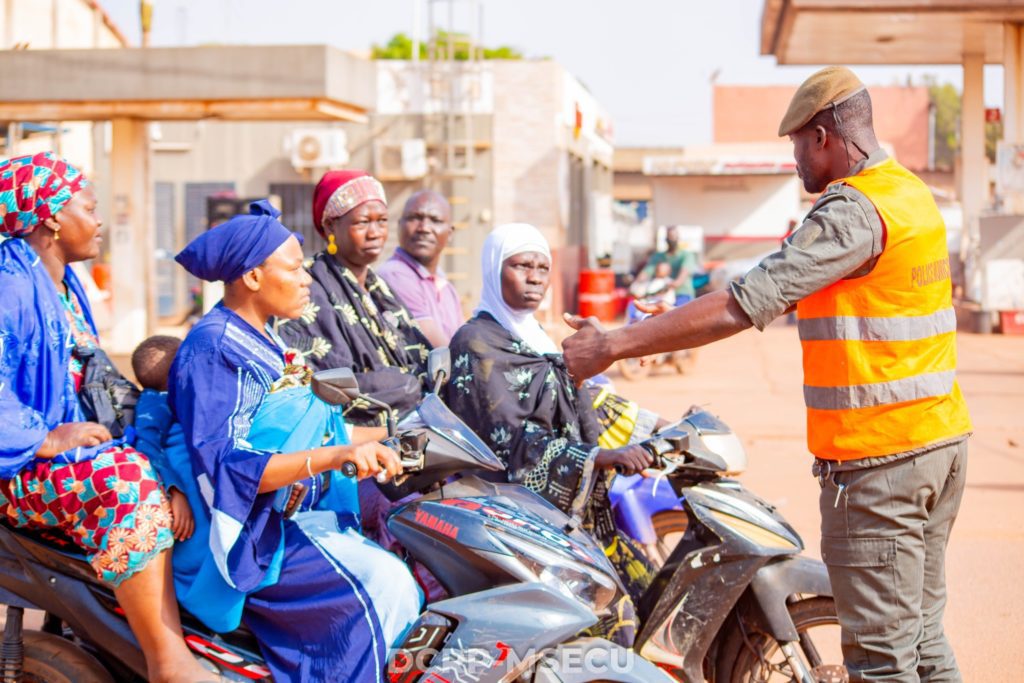 À Koudougou, les actions de proximité ont été renforcées pour rappeler les règles essentielles du code de la route : port du casque et de la ceinture, respect des feux tricolores et maîtrise de la vitesse.