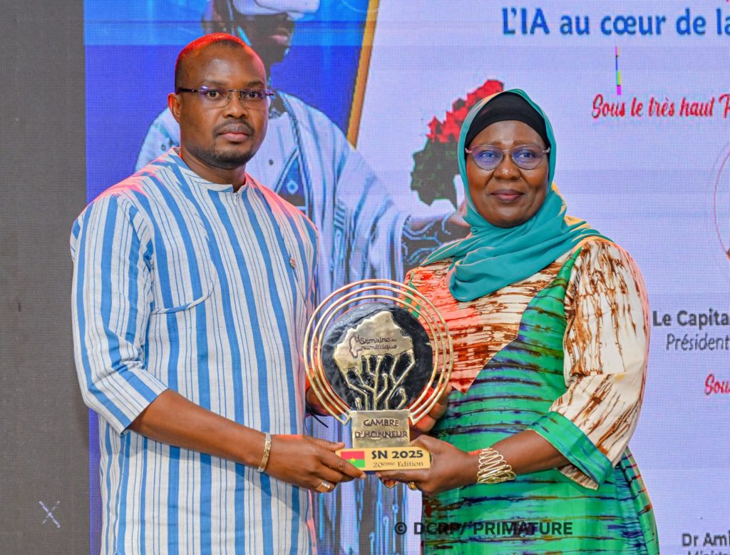 Le Premier ministre, Rimtalba Jean Emmanuel Ouédraogo, représentant le Chef de l’État, le Capitaine Ibrahim Traoré, a présidé ce vendredi 21 novembre 2025 à Ouagadougou la « Nuit des lauréats », cérémonie de distinctions qui a marqué la clôture de la 20ᵉ édition de la Semaine du numérique organisée sous le thème « L’intelligence artificielle au cœur de la transformation digitale ».