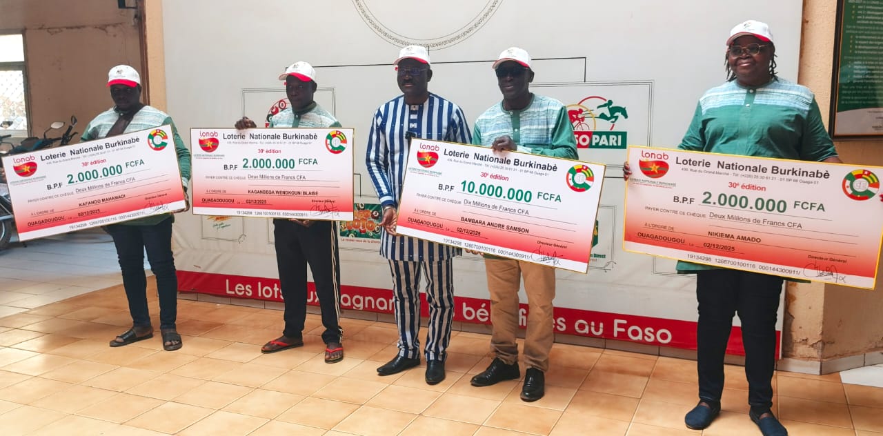Selon le Directeur général de la LONAB, Ibrahim Ben Harouna Zarani, ces quatre participants ont décroché ensemble la somme de 16 millions F CFA, représentant le deuxième gros lot du tirage, suite à une mise de 500 F CFA chacun. Le premier lot, d’un montant de 20 millions FCFA, a été remporté par des joueurs de la Côte d’Ivoire.