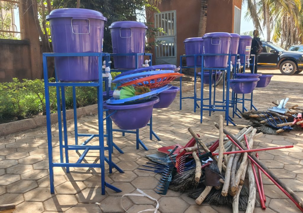 - 3e prix : 50 000 F CFA + 2 brouettes + 10 balais à manches en bois + 4 balais + 4 poubelles avec couvercles + 2 grandes poubelles + 2 moyennes poubelles + 4 râteaux à dents courtes….