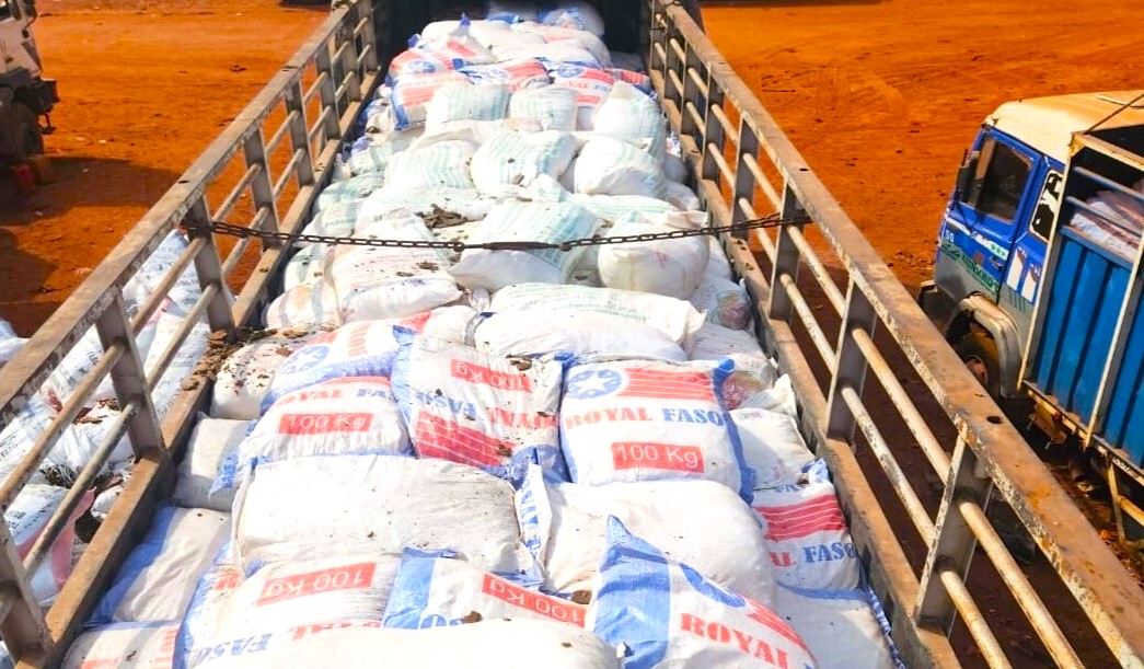 Le 30 novembre 2025, sur l’axe Bobo-Orodara, une remorque déclarée transporter du tourteau de coton a été inspectée après un renseignement jugé fiable. Le contrôle révèle 700 sacs de cyanure cachés sous la cargaison. Valeur estimée à 105 millions de francs CFA.