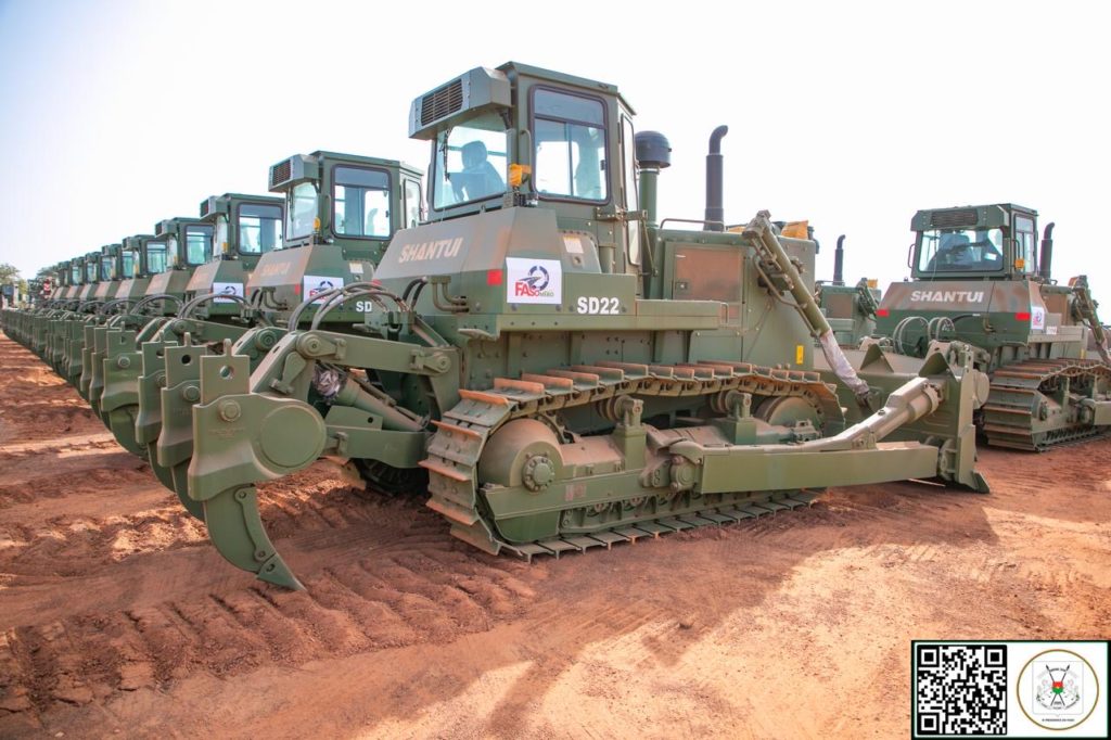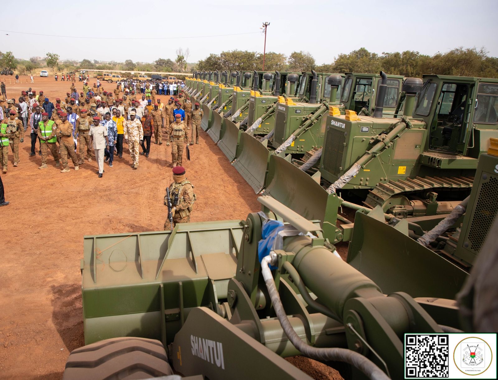Le Capitaine Ibrahim TRAORÉ ordonne ainsi d’accélérer les travaux de bitumage des routes à travers la remise de ce nouveau lot d’équipements composé de plus de 200 engins.