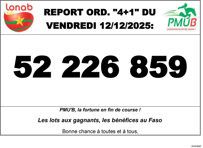 REPORT ORD. « 4+1 » DU VENDREDI 12/12/2025: 52 226 859