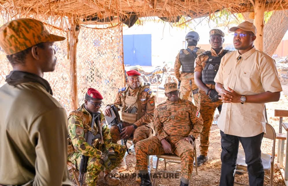 Le Premier ministre, Rimtalba Jean Emmanuel Ouédraogo, accompagné du ministre d’État, ministre de la Défense et des Anciens combattants, le général de brigade Célestin Simporé, s’est rendu, ce mardi 30 décembre 2025, auprès du détachement militaire de Di, localité autrefois sous emprise terroriste. Cette sortie a permis au Chef du Gouvernement de féliciter les forces combattantes pour les résultats obtenus sur le terrain et de leur assurer le plein soutien du Gouvernement dans l’accomplissement de leur mission.
