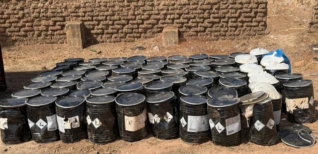 Dans ces habitations perdues au cœur de la brousse, le produit hautement toxique était stocké en silence, prêt à être acheminé vers des circuits illicites, exposant gravement les populations, l’environnement et la sécurité nationale à des conséquences potentiellement irréversibles.
