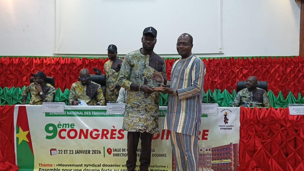 Le Syndicat national des travailleurs de l’administration des douanes (SYNATRAD) organise son 9e congrès ordinaire du 22 au 23 janvier 2026, à Ouagadougou. Ce congrès a été officiellement ouvert ce jeudi 22 janvier 2026, en présence de Victorien Zoungrana, chargé de mission, représentant le Directeur général des Douanes.